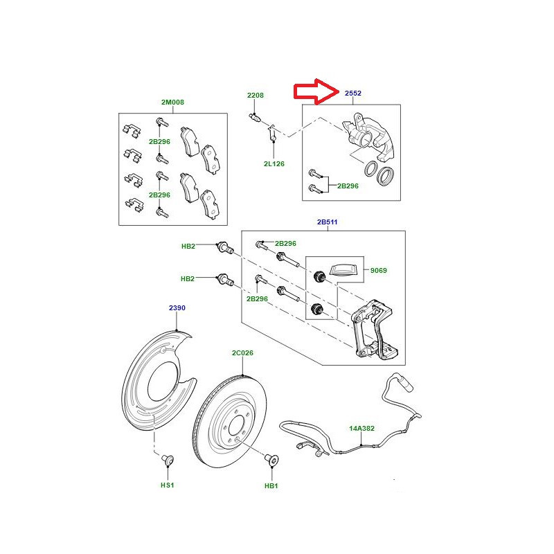 pour Etrier de frein arrière droit (Couleur rouge) LR050775B